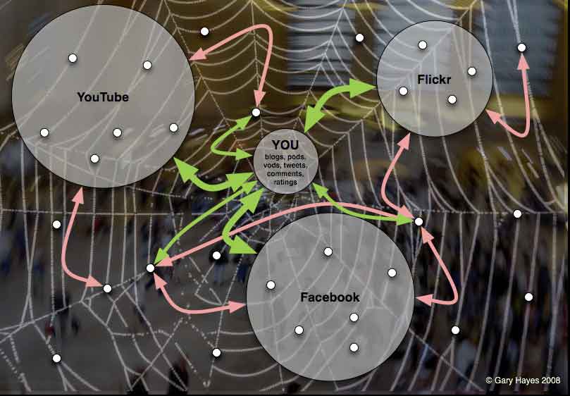 Showing how ‘you’ via your blogs, pod and vod casts, tweets, comments and ratings generate links to and from you. The more active you are the more you grow and strengthen the ‘neural’ connections.